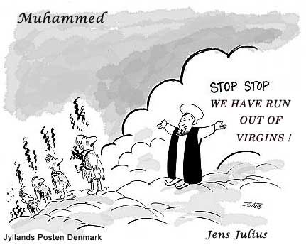 Last September Jyllands-Posten, a Danish conservative daily, published twelve cartoons of Prophet Muhammad. The cartoons were the paper’s response to a Danish author’s complaint that he could not find an artist who would be willing to draw illustrations for a book on the life of Prophet Mohammad. The paper ran twelve cartoons, in all of which the Prophet was depicted in derogatory ways. One cartoonist portrayed him as an apparent terrorist with a bomb-shaped turban, and in another he appears above the clouds warning the apparent martyrs that heaven had ran out of virgins.