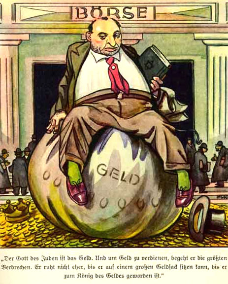 Click on image to see largerErnst Hiemer, “The God of the Jews Is Money,” 1938. See "Caricature or Bigotry?"